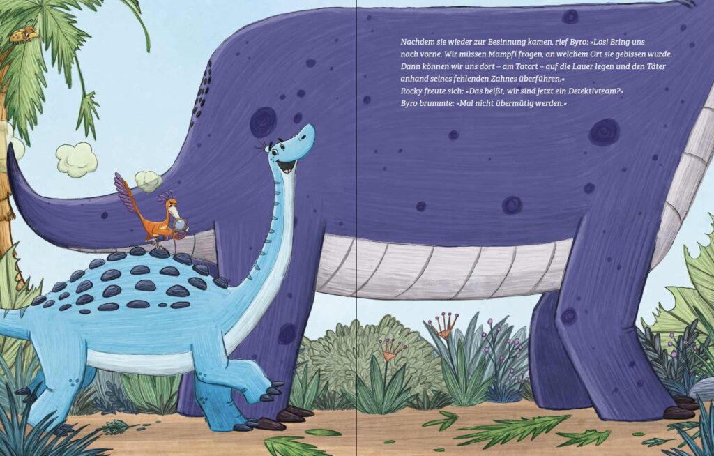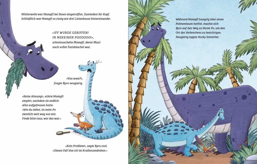 Der kleine Dino-Detektiv Byro hält sich für den „schlausten Dino der Kreidezeit“. Seine überlegene Intelligenz lässt er gerne mal gegenüber seinen riesigen Artgenossen raushängen. Doch seinen neuesten Fall löst Byro nur mit Hilfe eines treuen Freundes: Wer hat der gigantisch großen Puertasaurus-Dame Mampfi in den Po gebissen?